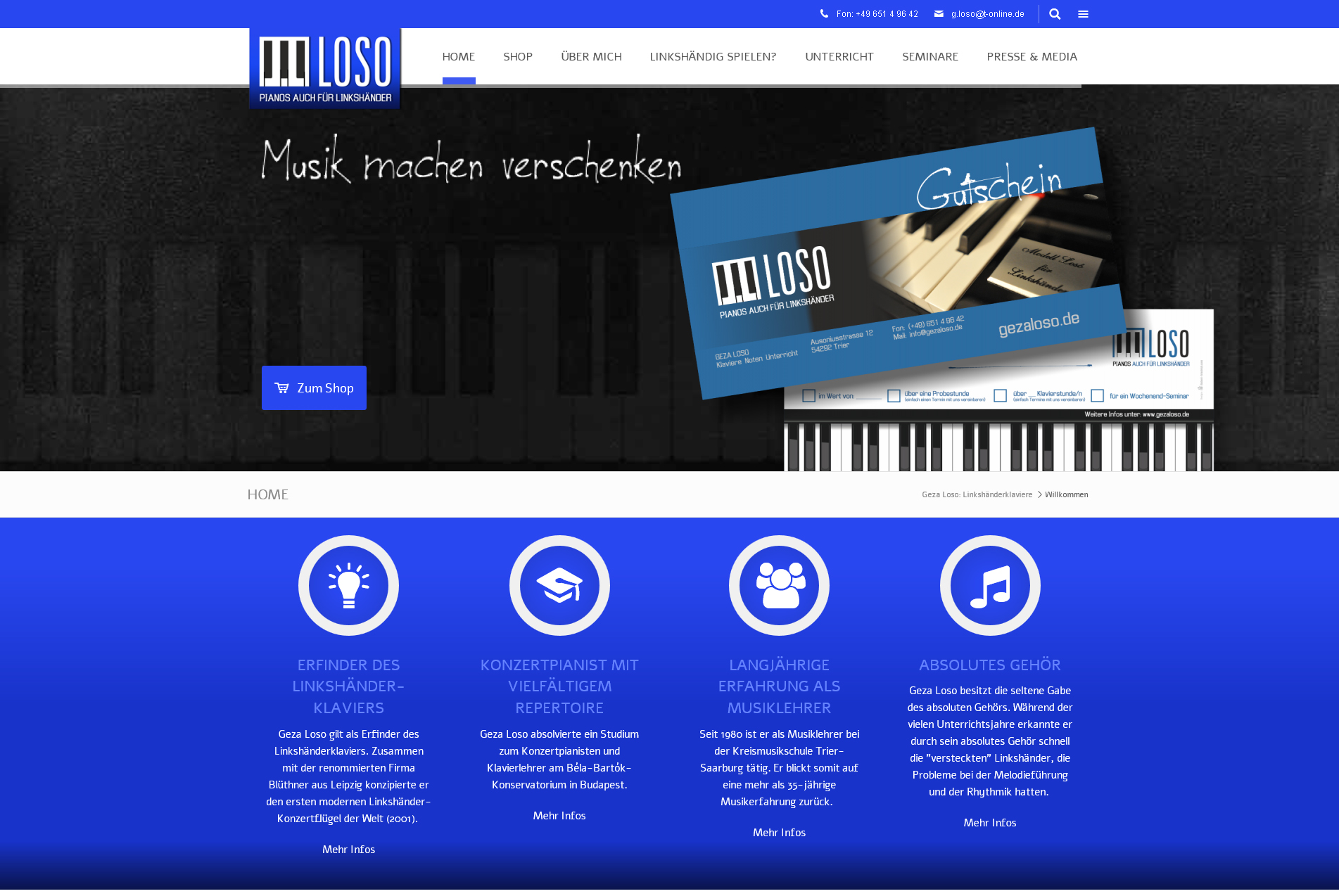 Ich bin Linkshänderin und war auf der Suche nach einem Klavier speziell für Linkshänder. Schon vor ungefähr 8 Jahren waren mir bei Recherchen zu linkshändigem Klavierspielen im Internet Herrn Losos Beiträge aufgefallen. Ich erinnerte mich an meine Suche und fand auf der Seite von Herrn Loso, die sehr übersichtlich gestaltet ist, das richtige Klavier für mich.